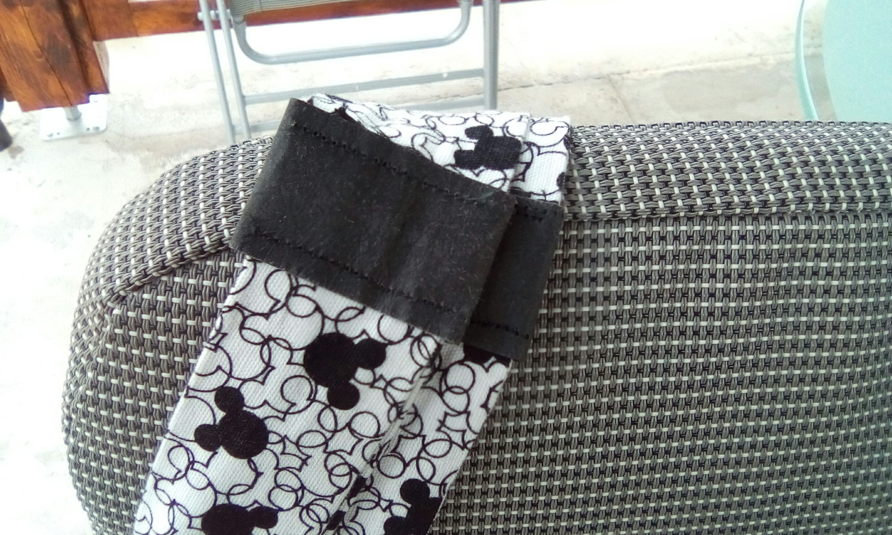 Ich habe einfach zwei Griffe mit einem grossen Zick Zack Stich aneinander genäht und mit einem Stück SnapPap umwickelt….😁