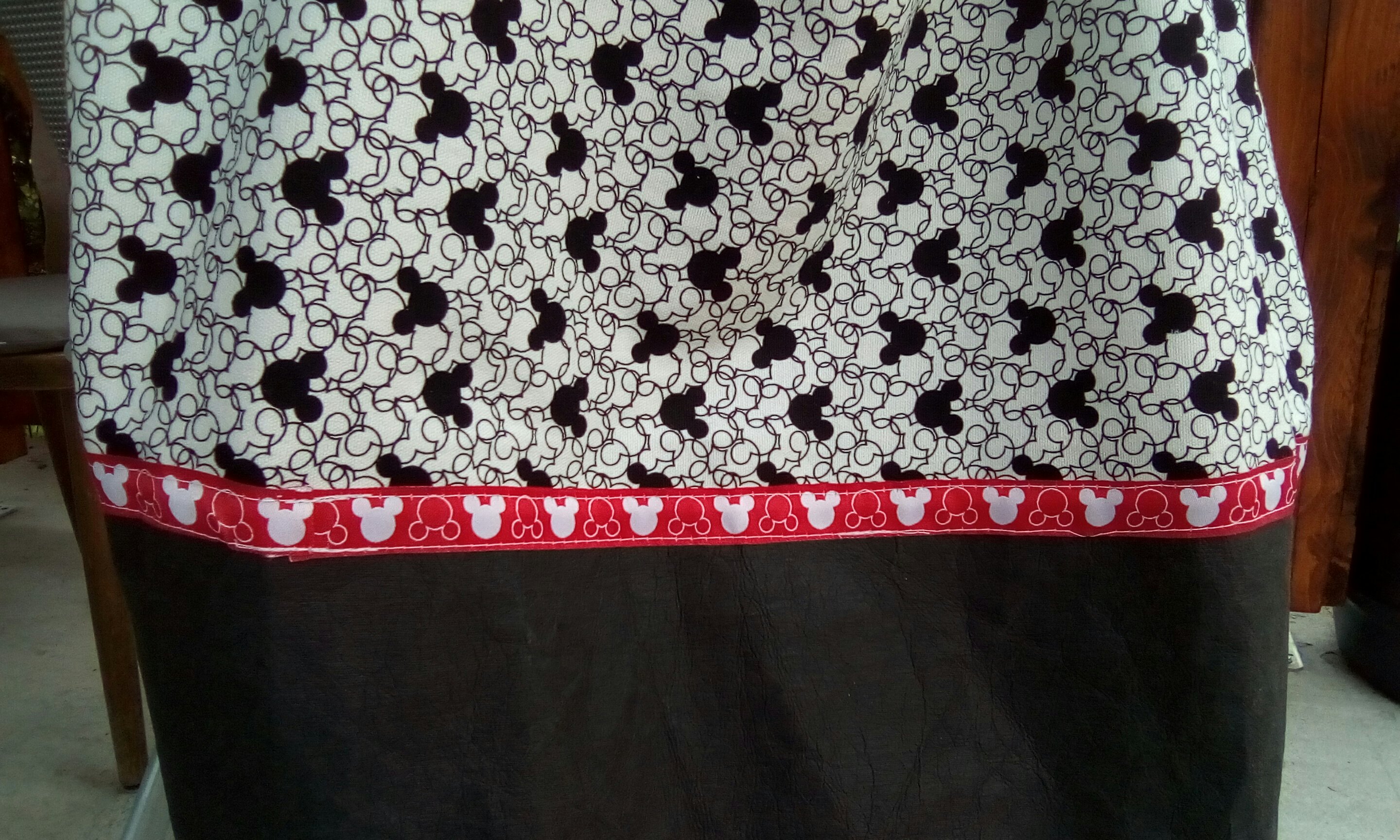 Die Tasche war soweit fertig…, aber ich war noch nicht wirklich zufrieden… Ehe ich also die letzte Naht verschloss, nähte ich noch einen kleinen roten Eyecatcher um die Naht zwischen SnapPap und Stoff, einfach um der Tasche noch etwas Pep zu verleihen… 😉 Erst dann habe ich die Naht (mit der Nähmaschine und nicht mit einem Handstich, einfach weil ich faul war…) verschlossen.