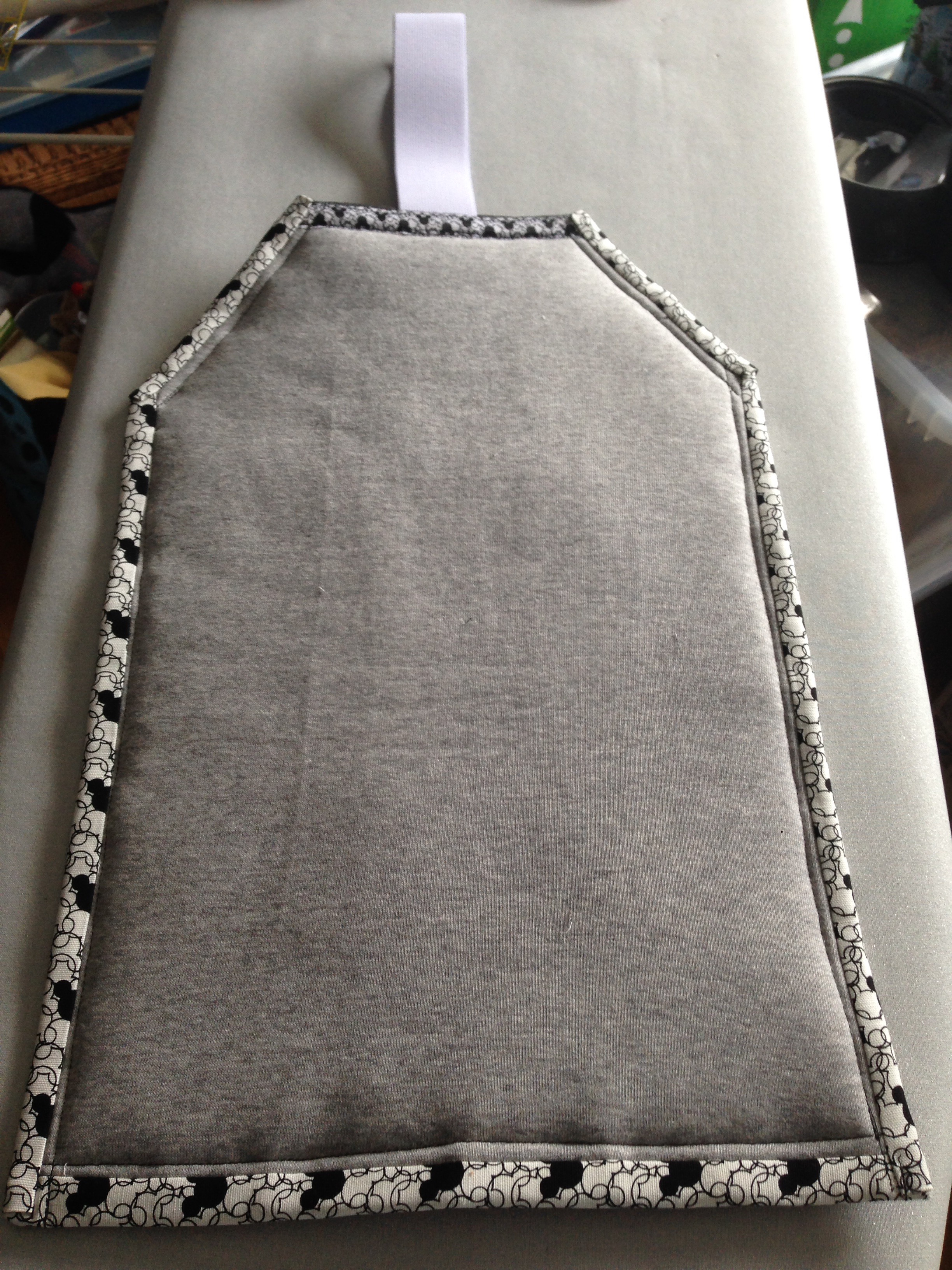 Damit das Tablet auch schön weich eingepackt ist habe ich zwischen beiden Stofflagen dickes Vlies verwendet. Als Innenstoff hat ein Stück vom Bein einer ausgeleierten Jogginghose gedient.