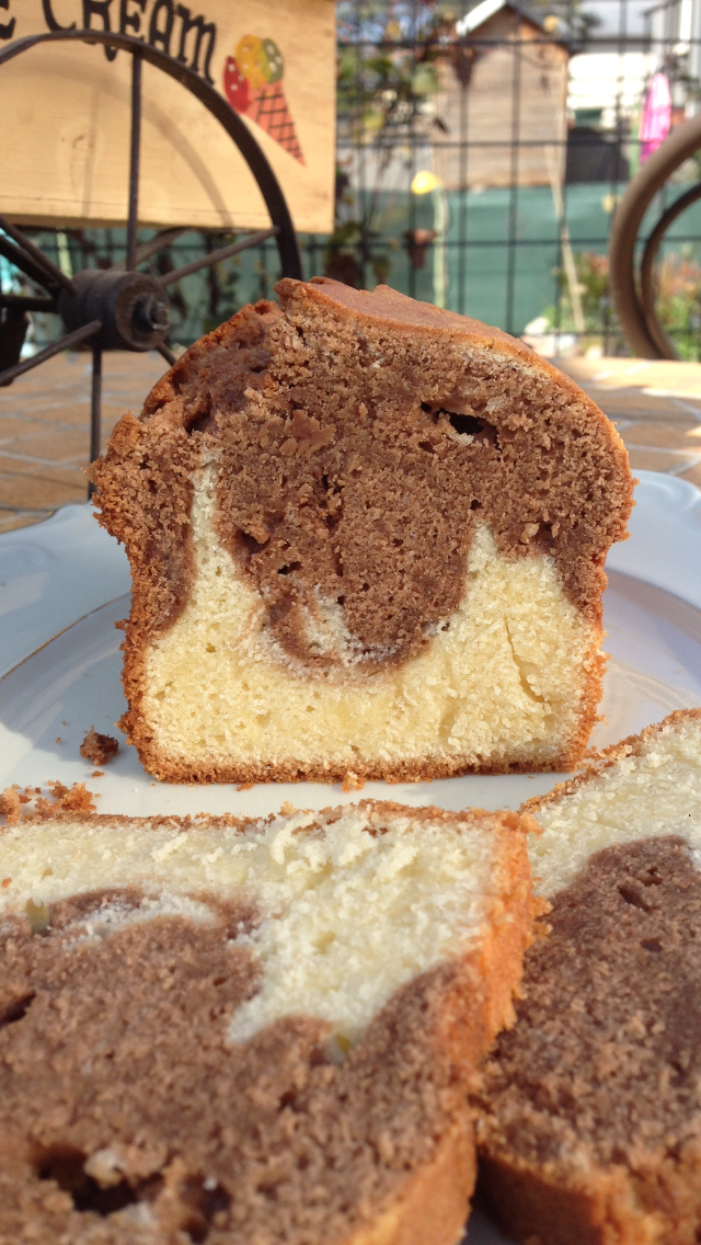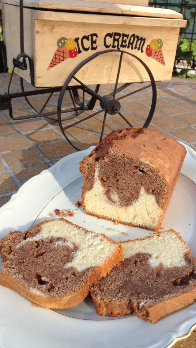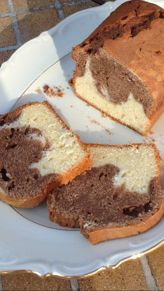 Butter und Zucker cremig rühren, Eier nacheinander zugeben und jeweils gründlich mischen. Das Mehl mit dem Backpulver mischen und dann abwechselnd mit der Milch unter den Teig rühren, gründlich mischen. Die Hälfte des Teiges in die Kastenform geben. Zu der restlichen Hälfte das Kakaopulver und den Vanilleextrakt geben und gründlich mischen. Auf dem hellen Teig in der Form verteilen und nach Wunsch mit einer Gabel kurz durchziehen um ein Muster zu erhalten.