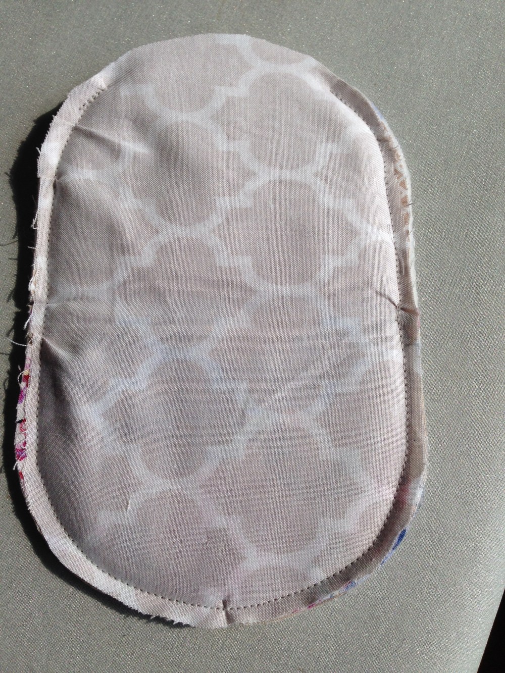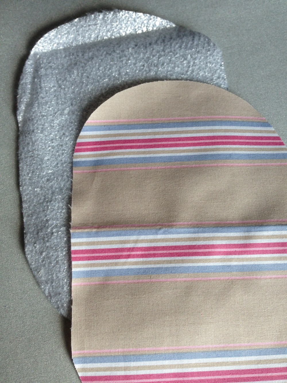 Das Stoffstück das außen kommt wird auf des Insul-Fleece gelegt.
