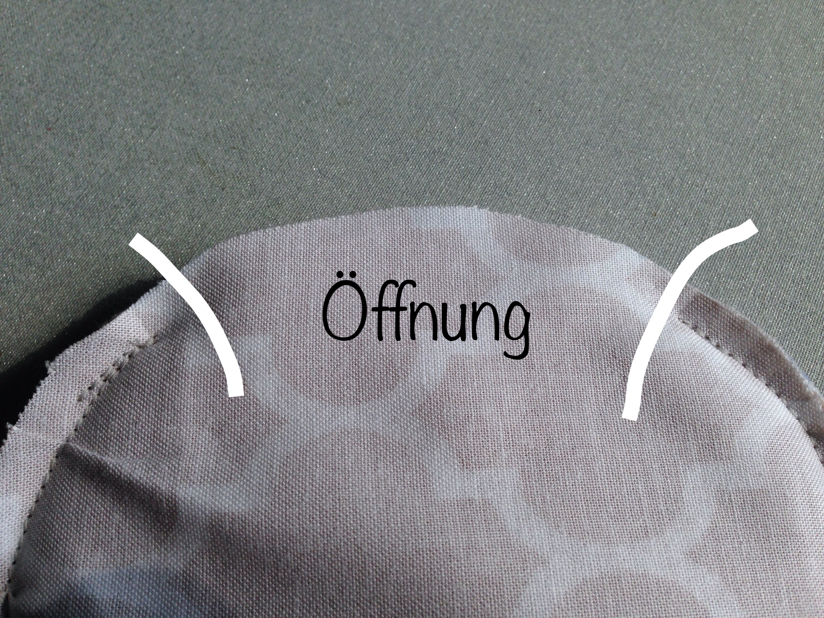 Mit der rechten Seite nach unten wird das Futterstoff auf die Taschen gelegt, und festgesteppt. ACHTUNG: Oben eine Öffnung von 5 cm zum Wenden lassen!!
