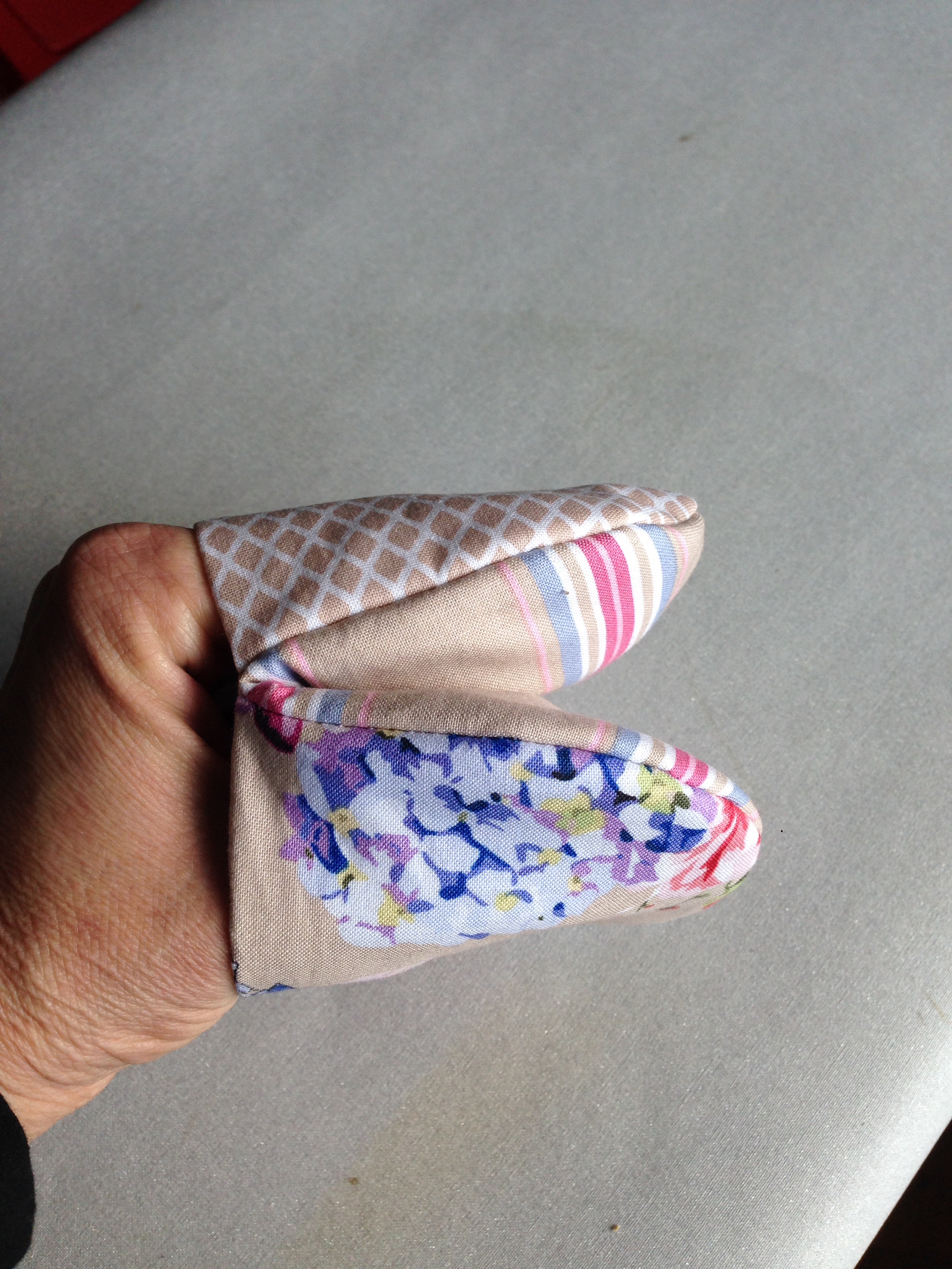 Danach die Einschubtaschen nach außen wenden, sodass das Futterstoff Innen liegt und das Gewünschte Stoff außen.