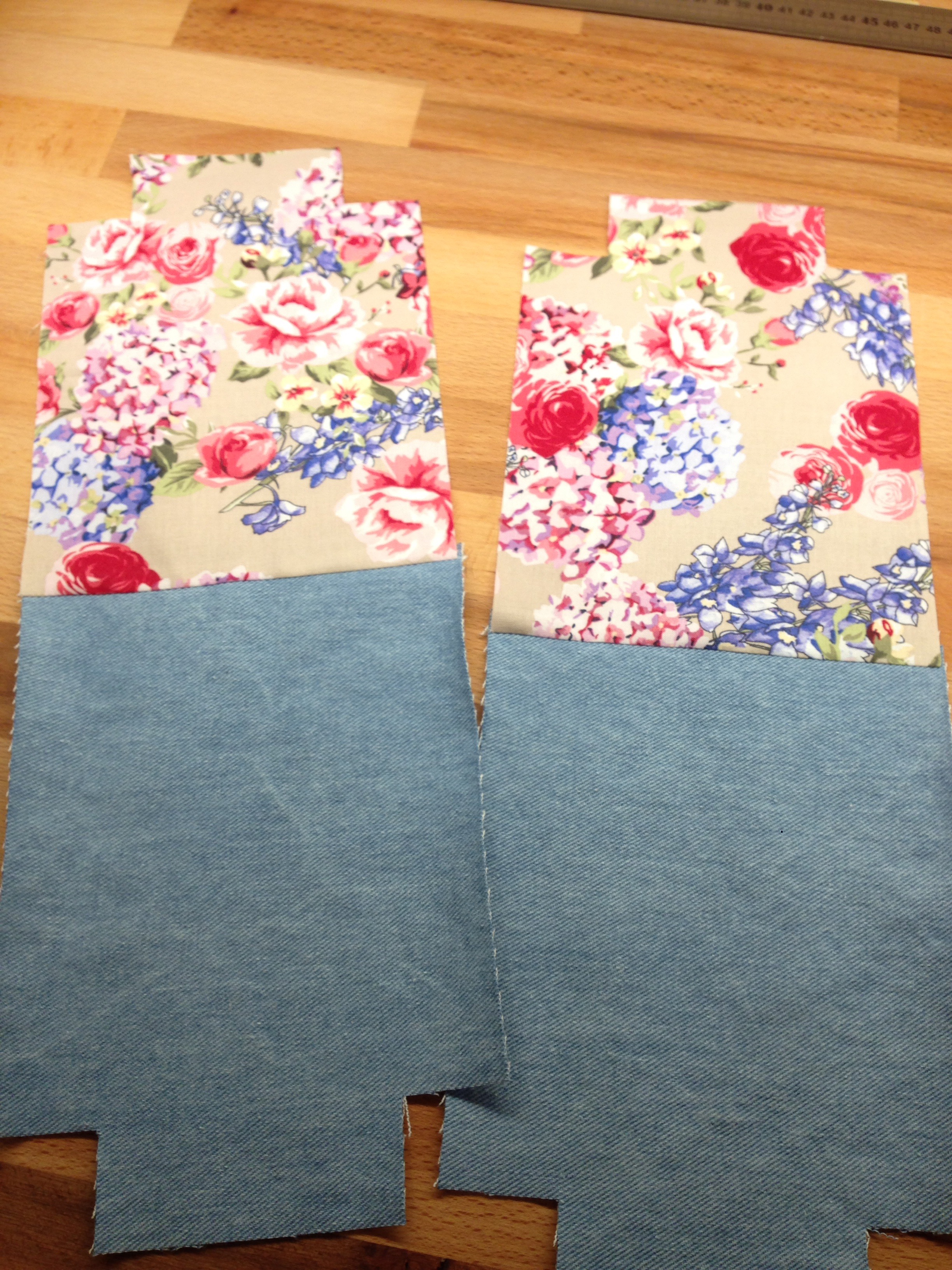 Jeweils ein Futterstoff rechts auf rechts auf den Außenstoff an der oberen Kante steppen…