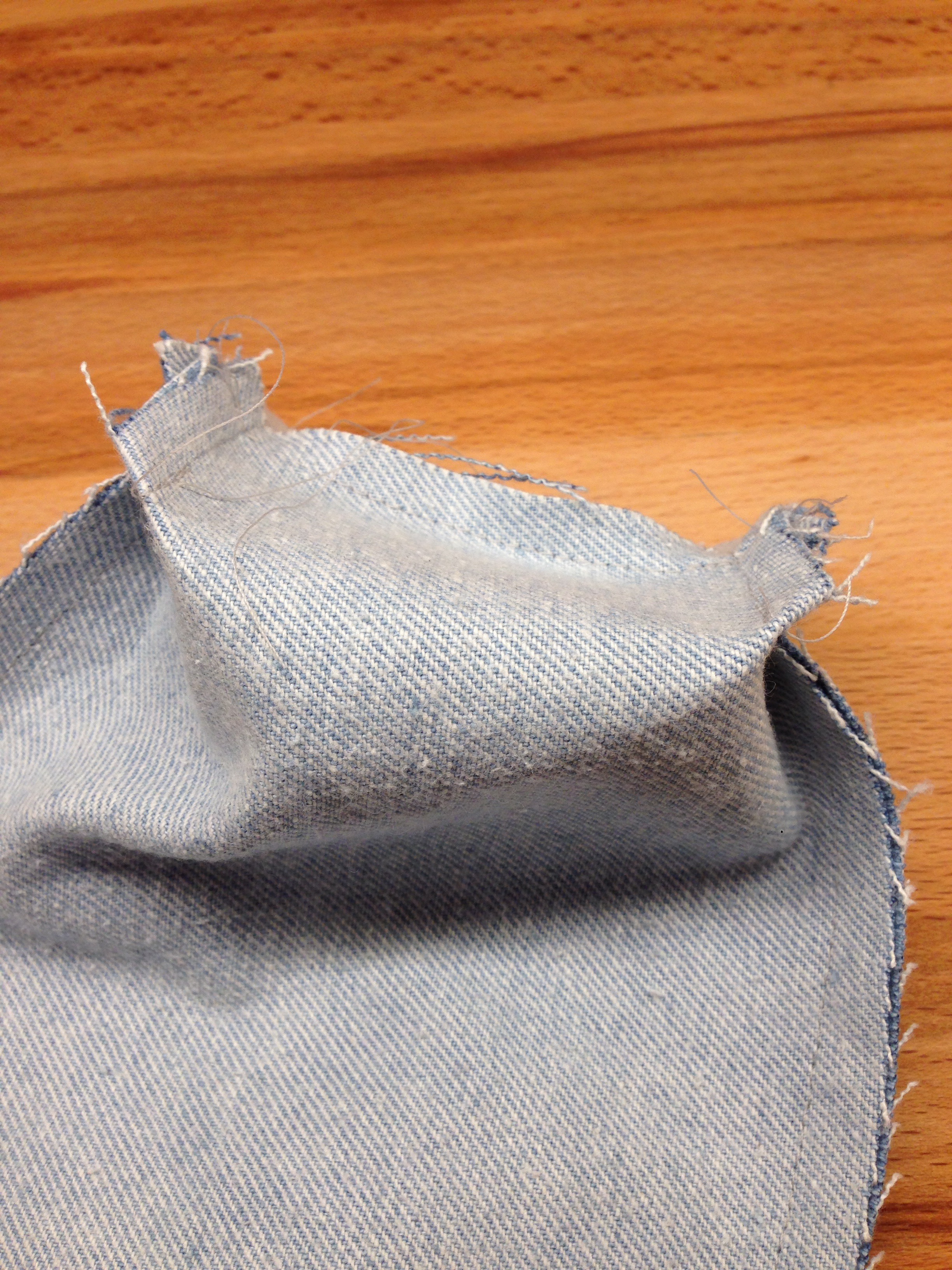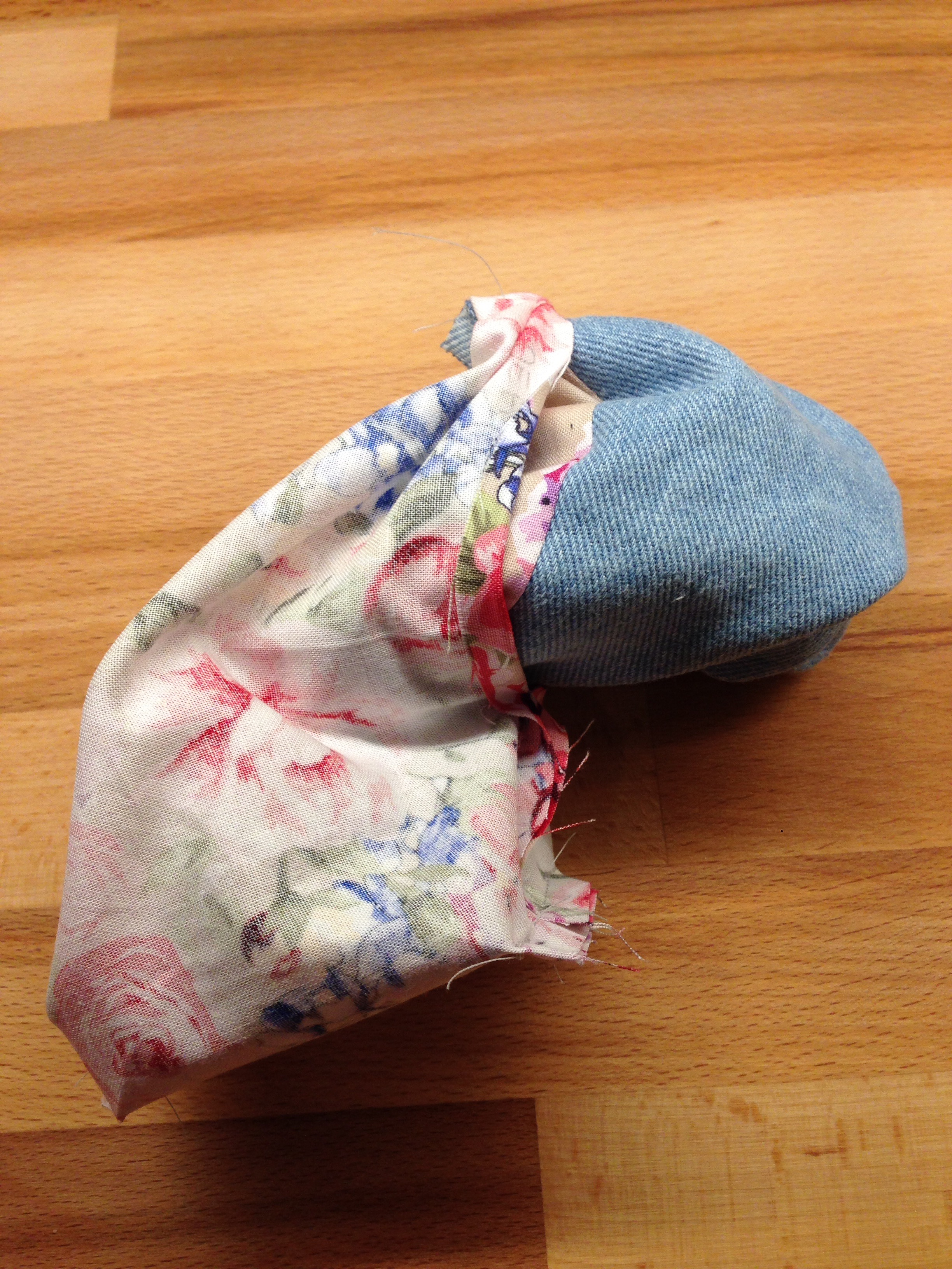Die rechten Winkel-Öffnungen werden aufeinander gelegt und zugenäht bei Aussen- und Innenstoff