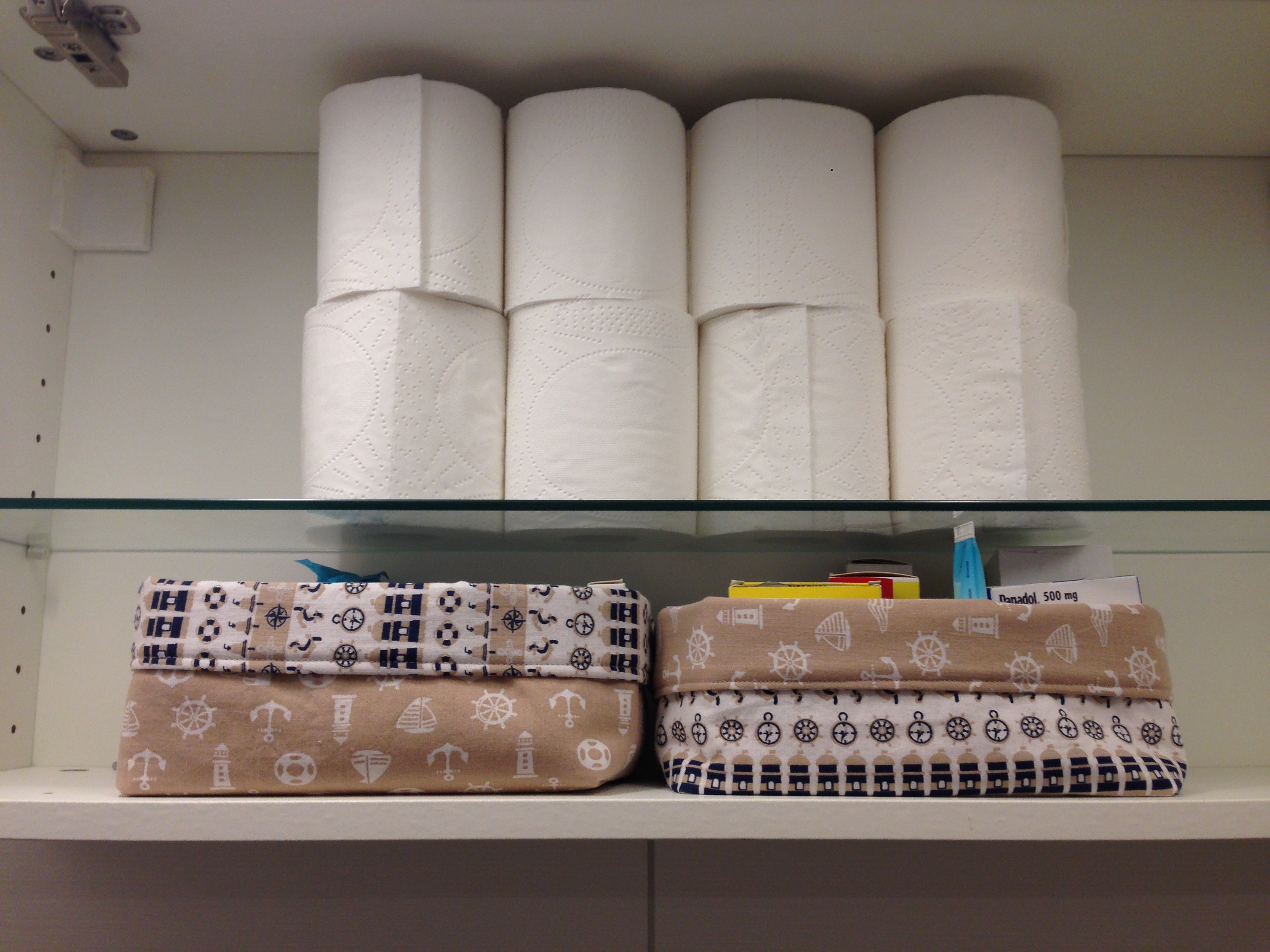 Und da irgendwann, wenn ich Zeit, Lust und die richtigen Ideen habe, dieses Gästeklo eine maritime Deko verpasst bekommt, nehme ich für mein „Utensilo“ meine heißgeliebten maritimen Stoffe