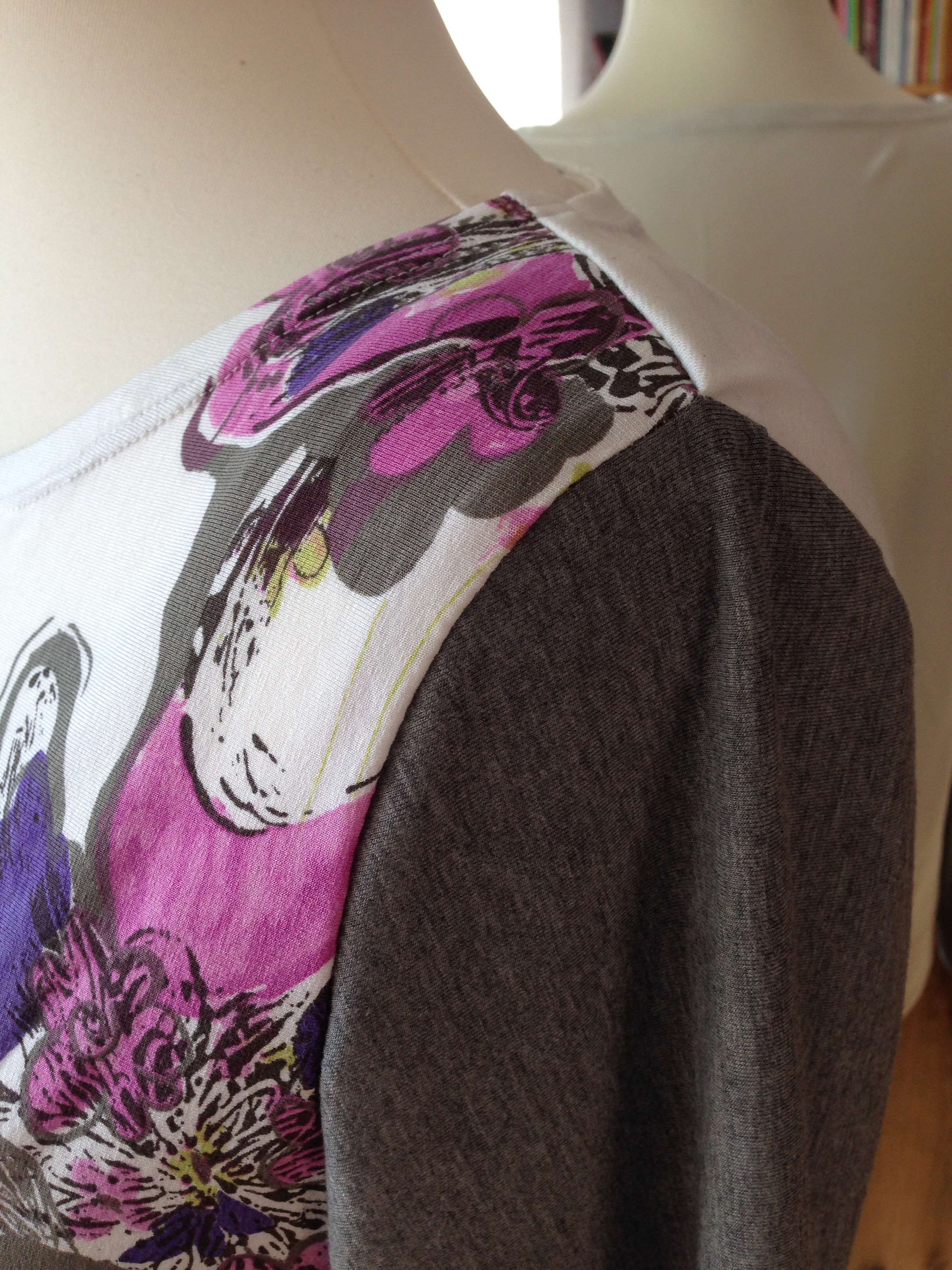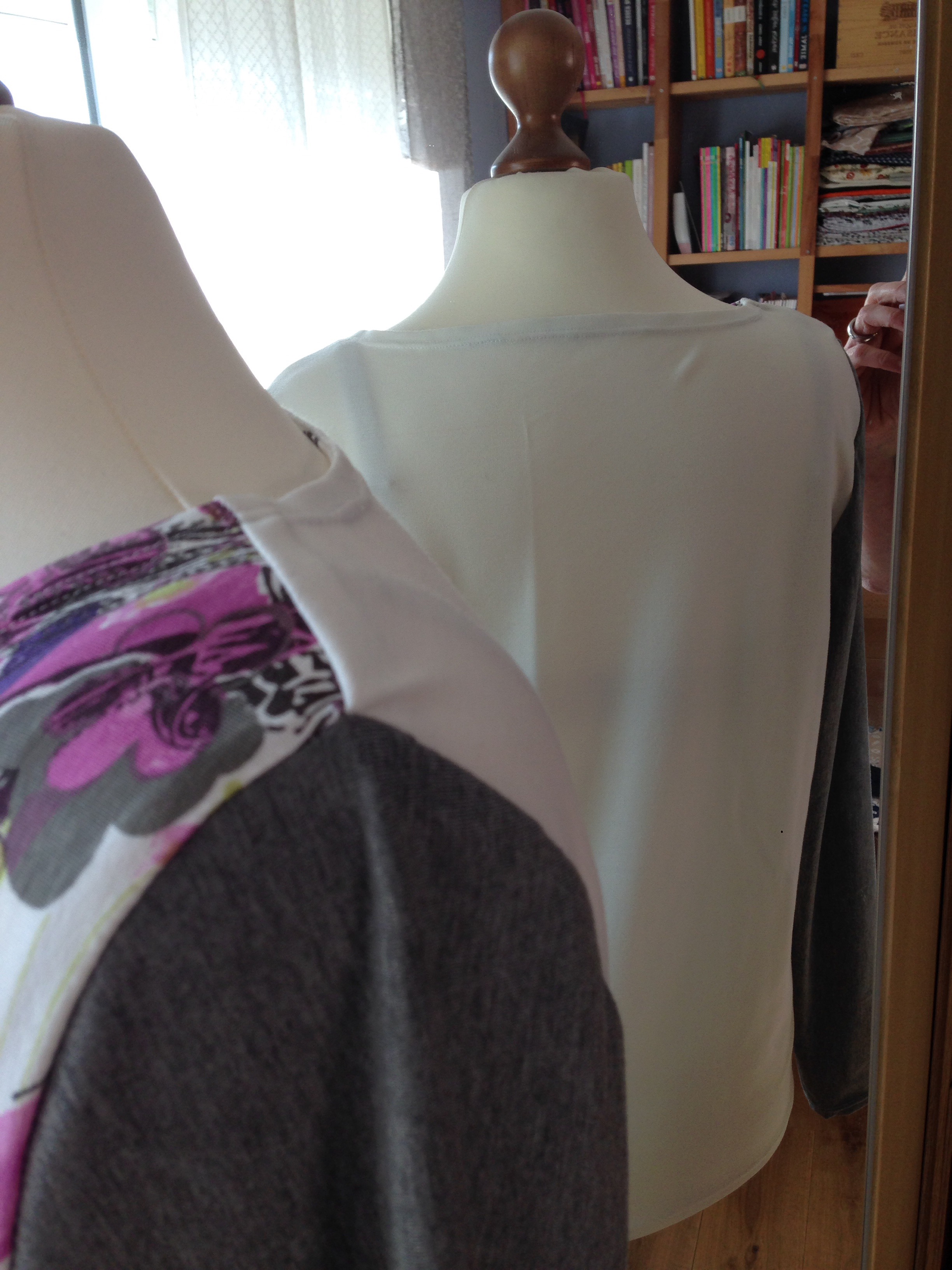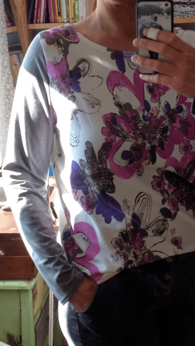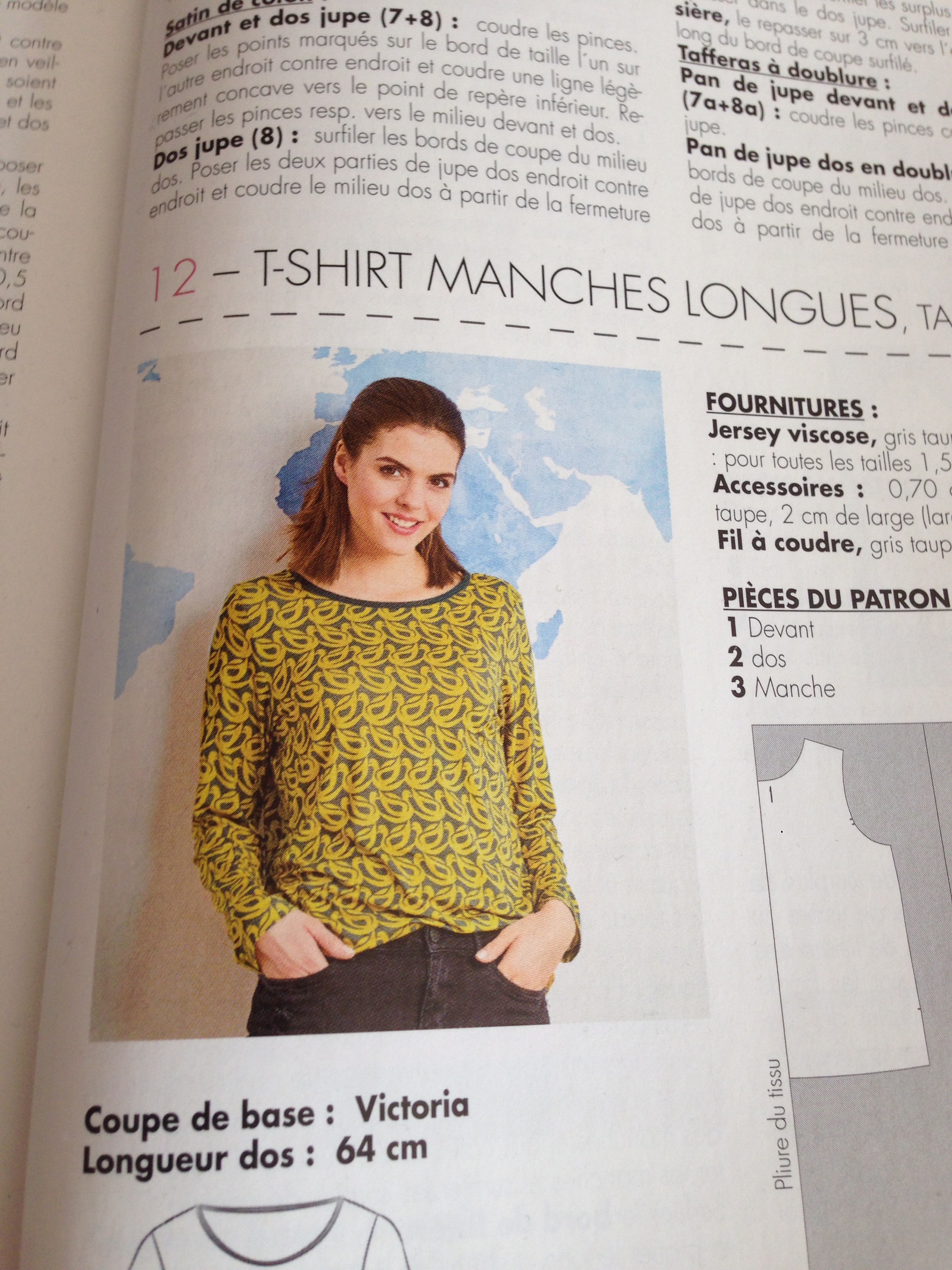 Ein einfaches Shirt habe ich dann in einer älteren Ausgabe von „Milliblu’s“ gefunden. Als ich diese Ausgabe gekauft hab, stand sie leider nur in französisch im Regal… Bei einer neueren Ausgabe hab ich dann entdeckt dass es sie tatsächlich auch in deutsch gibt. Witzig ist dass in der Zeitschrift, also im Nähjournal natürlich ein französischer Text steht, auf dem Schnittmusterbogen die Angaben aber in deutsch…